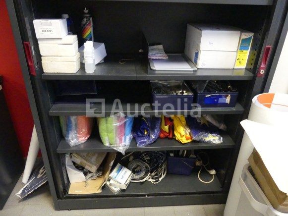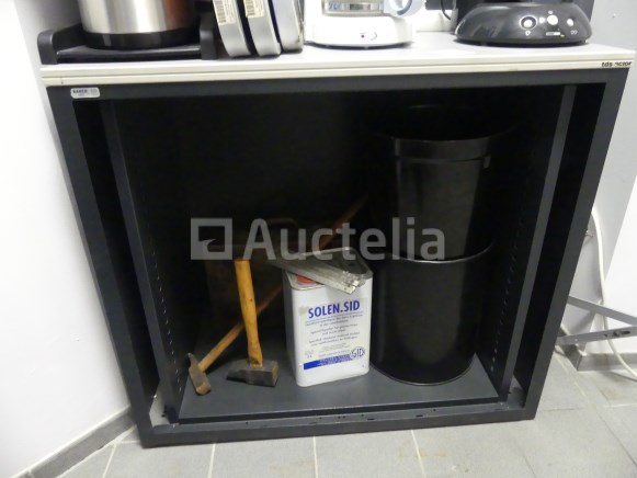 Kantoormeubilair Merk: TDS acior Lot waaronder: 1 x 120cm x 47cm x 196cm sluiterkast Shutterkasten van 3 x 80 cm x 40 cm x 73 cm 1 x 60cm x 80cm x 73cm tafel 1 x 80cm x 47cm x 196cm sluiterkast 4 x Blauwe Stoffen Stoelen Opmerkingen: perceel gelegen op de eerste verdieping via de trap