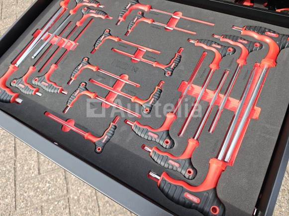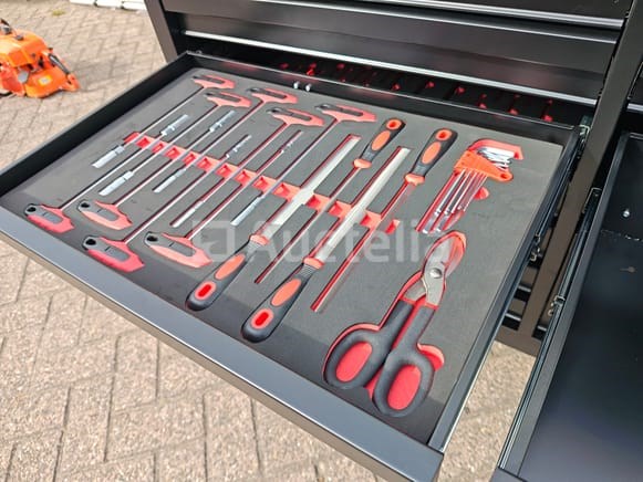 Compleet gevuld met gereedschap, t/m sleutel 34, en met krachtdoppenset ongebruikt