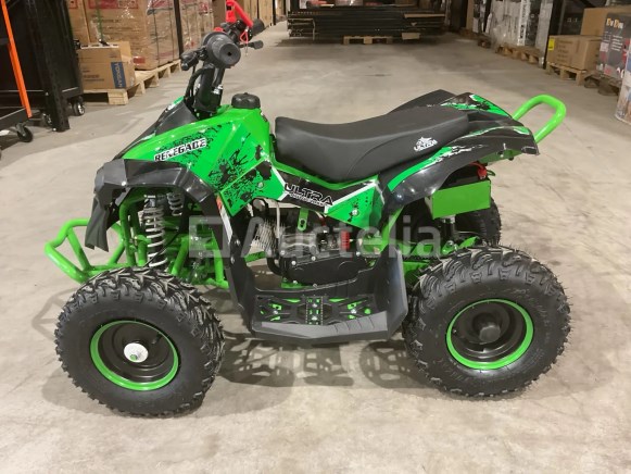 Voorzien van 49 cc benzine motor met electrische start, schrijfremmen voor en achter; 2 sleutels; dodemansknop en koord; voor bumper; inclusief toebehoren; ongebruikt in doos