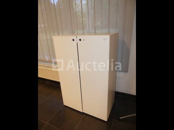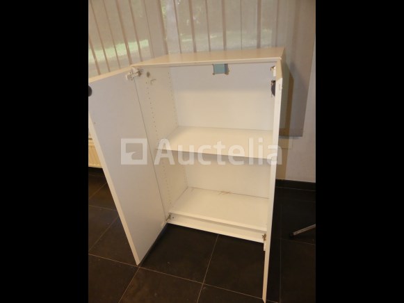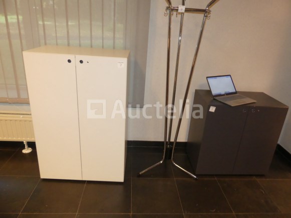 Onderkast met 2 deuren Aantal: 2 1 lage kast van 80x47x83 cm 1 binnenplank, geen sleutel 1 halfhoge kledingkast van 80x47x122 cm 2 binnenplank, geen sleutel Geleverd met een chromen kapstok Hoogte: 175 cm