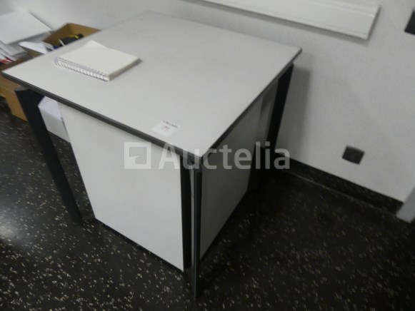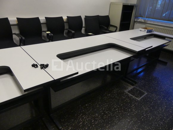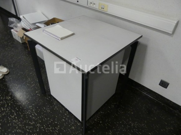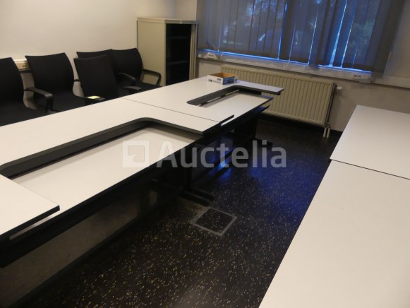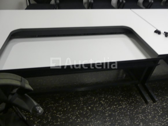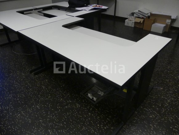 Recht en Diversen Bureau Hoeveelheid: +/-6 Compositie: +/-6 x 160x93x73 cm rechthoekig bureau met dubbelhoge plank 2 rolluikkasten van 80x47x134 cm 1 vierkante tafel van 70x70x75 cm