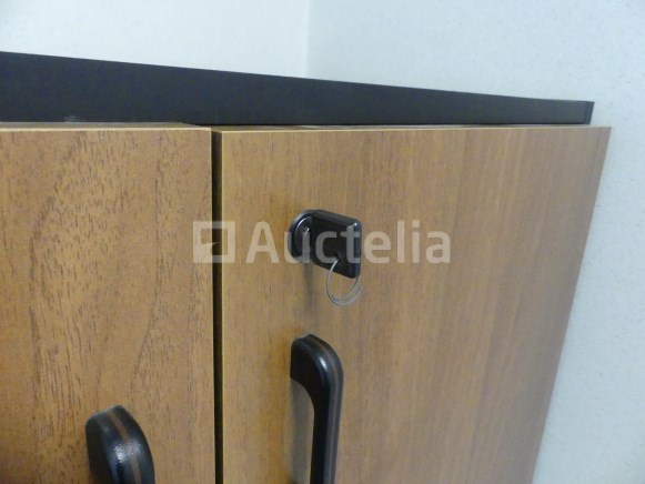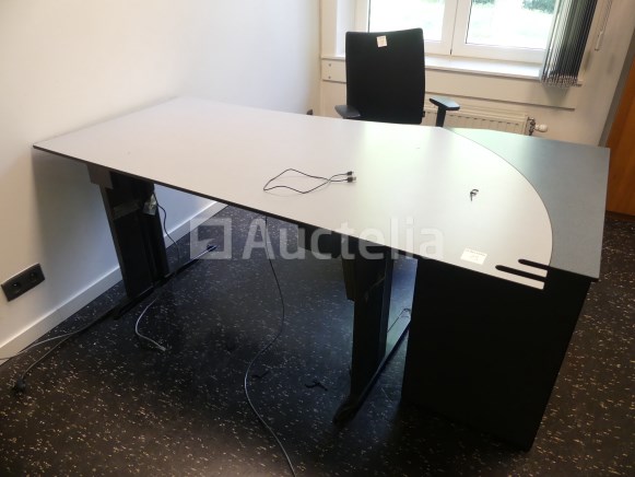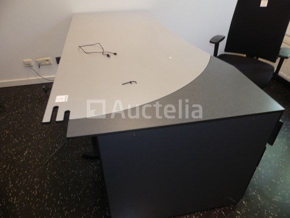 Compositie: 1 x 180x100x73 cm rechthoekig bureau met geïntegreerd ladeblok 1 x halfhoge kledingkast met 2 deuren van 90x45x130 cm 1 x 2-deurs onderkast van 100x46x88 cm 1 x bureaustoel met armleuningen Opmerkingen: Kavel gelegen op de 1e verdieping middels trap