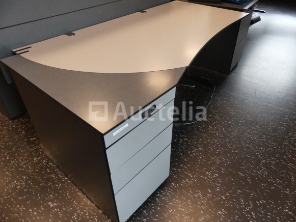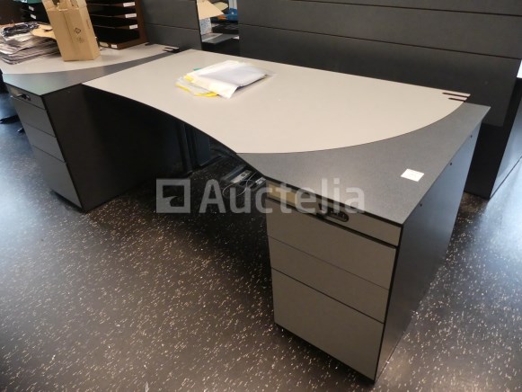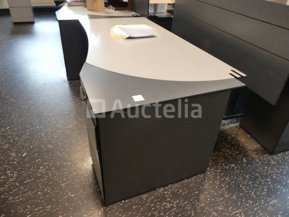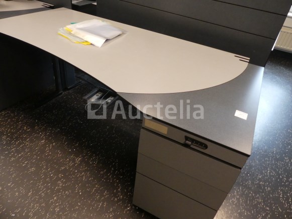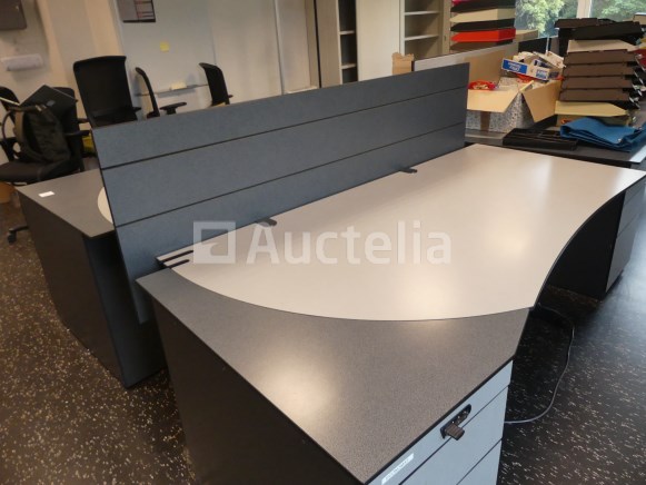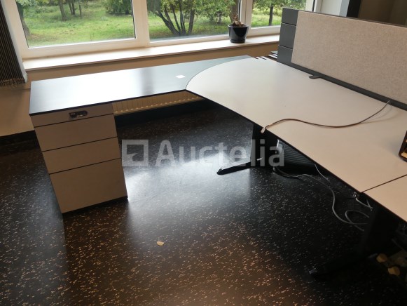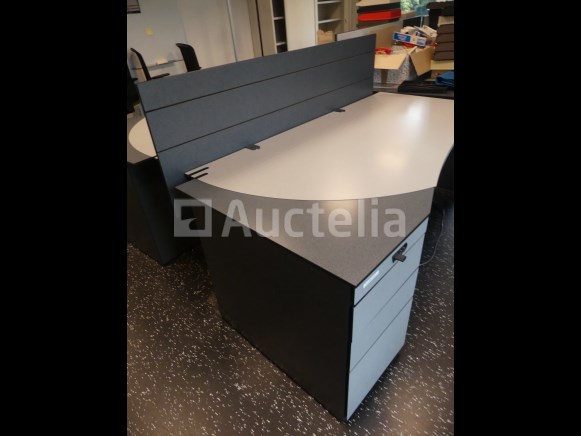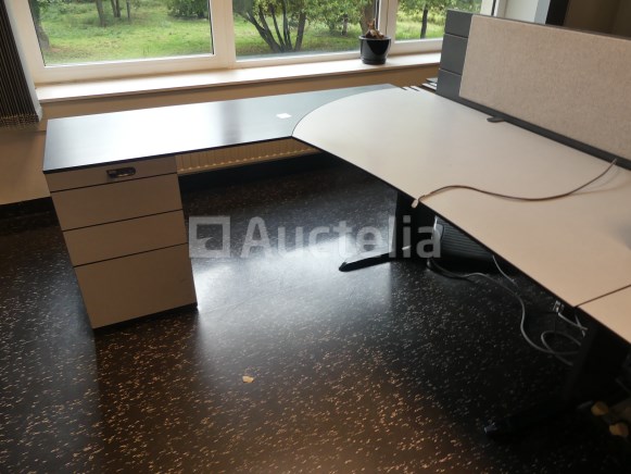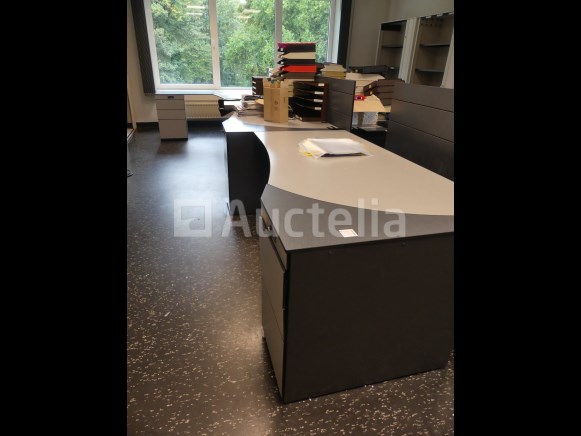 Niet inbegrepen: Desktopcontent Compositie: 1 linker hoekbureau van 180x180x73 cm met geïntegreerd ladeblok 1 rechter hoekbureau van 180x180x73 cm met geïntegreerd ladeblok 2 linker bureaus van 180x100x73 cm met geïntegreerde ladeblokken 2 rechte bureaus van 180x100x73 cm met geïntegreerde ladeblokken 3 Paneel voor bureauverdeler 1 bureau van 123x80x73 cm met 3 ladeblokken Opmerkingen: Kavel gelegen op de 1e verdieping middels trap