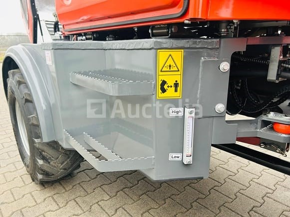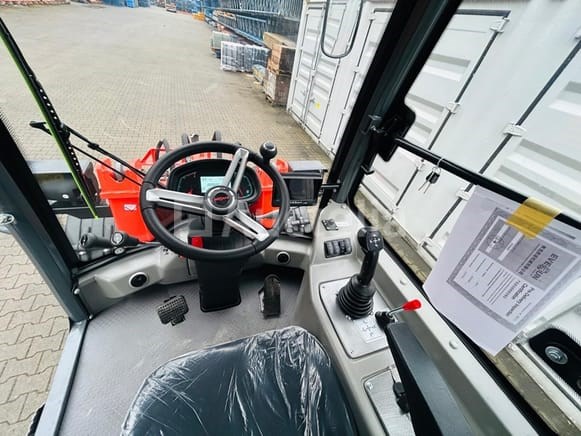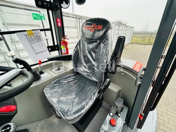 V.v. Quick Hitch; maximale hefhoogte 2980mm; rijsnelheid: 22 km/h; 4WD; Luxe volledig gesloten cabine; V.v. 1 deur; te openen raam; geveerde stoel; radio; ventilator en verwarming; Kantelbare cabine ivm vereenvoudigd onderhoud; graafbak van 0.53 m3 en palletvorken; totale afmeting met graafbak; Rated load 1200KG; Eigen gewicht 4000KG; 36,8 Kw; 5190x1770x2600m