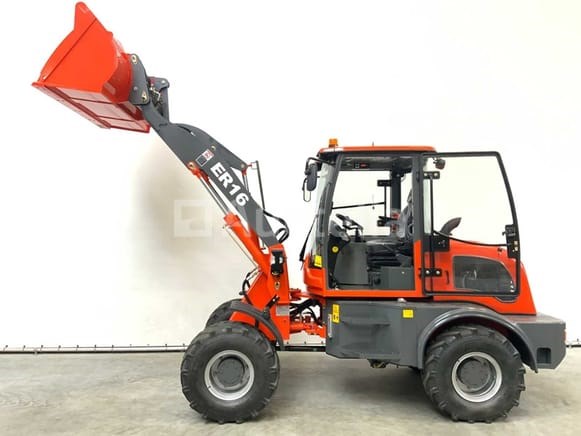 Ongebruikt; hydraulische snelwissel; rated load 1600kg; maximale hefhoogte 2980mm; Motervermogen 50PK; Transmissie 2 versnellingen Torque Converter Max. rijsnelheid: 22 km/h; 4WD; Luxe volledig gesloten cabine; V.v. 1 deur; te openen raam; geveerde stoel; radio; ventilator en verwarming; Kantelbare cabine ivm vereenvoudigd onderhoud; graafbak van 0.80 m3 en palletvorken; totale afmeting met graafbak; 6152