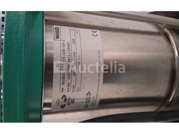 Frequentie gestuurde pomp mvi 805-1/16/E/3-400-50-2 QS FC 90S2A-42 centrifugal pump, inline pump, vertical high pressure centrifugal pump WILO Multivert MVI805-1 /16 /E /3-400-50-2 /EC 4024730/0403/02117 p: max. 16 bar t: max. 120 ° C Installation length: 200 mm Connections: Ø 48 mm Motor: QS FC 90S2A-42 H 1.85 kW 2810 rpm 230/400 V 3AC 50 Hz used, overhauled! Dimensions: 255 x 250 x 705 mm