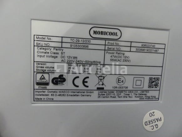 Gekoelde koelkastdoos 12/230 volt Merk: Mobicool Model: TC29-12/230 Status: Verlicht op de dag van de inventarisatie