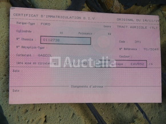 Tractor Merk: Ford Model: 7840 SLE DT Jaar: 1995 Uren: 9760 Lengte: 460 cm Breedte: 240 cm Hoogte: 300 cm Gewicht: 1730 kg Datum van eerste inschrijving: 14-11-95 Brandstof: Diesel Certificaat van conformiteit: Ja Technisch keuringscertificaat: Ja Registratiecertificaat Deel 1: Ja Voertuig nog in gebruik (kilometerstand verandert): Ja Chassisnummer: 011273B Status: Functioneel op Inventarisatiedag Niet inbegrepen: Grinder MMA: 8250 kg
