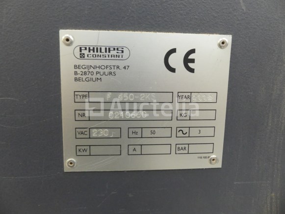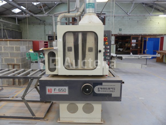 Bandschuurmachine Merk: Constant Philips Model: F-650 Jaar: 2002 Spanning: 230V driefasig Lengte: 150 cm Breedte: 135 cm Hoogte: 215 cm Gewicht: 2000 kg Vermogen: 22 kW Conditie: Niet getest Inbegrepen: Kar Niet inbegrepen: Zuiging