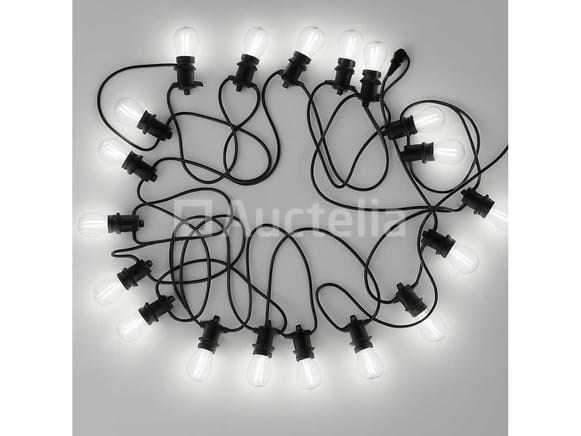 12 x 10 Meter lichtslinger is voorzien van een E27 fitting en gebruikt een 2 aderige kabel van 0.75 mm² met IP44 spatwaterdichte bescherming - geschikt voor zowel binnen als buitengebruik - De lichtslinger werkt op 220V en heeft een maximale belasting van 500W - De afstand tussen de lamphouders bedraagt 95 cm - een aansluitsnoer van 1000 mm - Dankzij de geïntegreerde stekker en contrastekker kunnen meerdere lichtslingers eenvoudig aan elkaar worden gekoppeld - Lampen niet inbegrepen