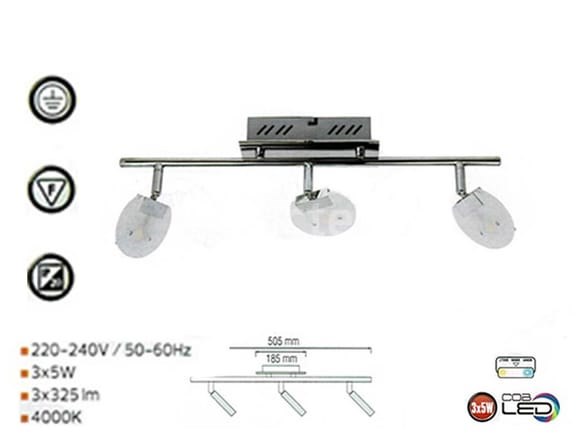 6 x LED plafondlampen model HL7163L - Max vermogen 3 x 5W - Kleurtemperatuur 4000K (neutraal wit) - Lichtstroom: 975 lumen - DimEnsions: 505 x 90 mm - Kleur: Zilver - Spanning: 220_240V (50/60 Hz) - Bescherming: IP20 - Inclusief lampen - Ideaal voor binneninstallatie: woonkamers- keukens- winkels of gangen