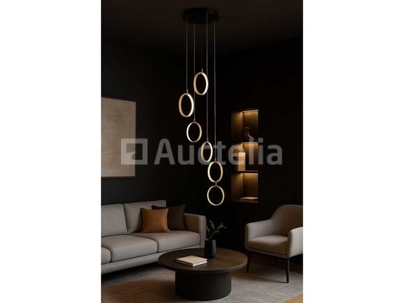 LED hanglamp model B069/6 - Kleurtemperatuur 3000K (warm wit) - Diameter: 350 mm - In hoogte verstelbaar - BronLicht: geïntegreerde LED Strip - Spanning: 220_240V (50/60 Hz) - Inclusief montageset - Ideaal voor gebruik binnenshuis: woonkamers, Slaapkamers, kantoren of woonruimtes - 3 jaar garantie