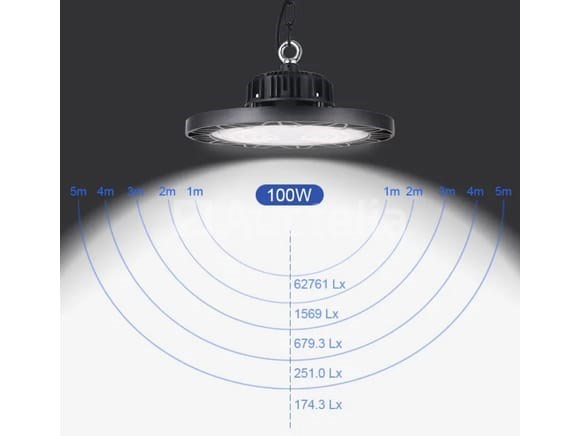 40 x Highbay UFO 100 Watt LED in PRO-ontwerp biedt hoge efficiëntie met 12.000 lumen bij 100 lumen per watt - Uitgerust met Professioneel LED voor superieure helderheid en betrouwbaarheid - Dimbaar met een schakelaar die 3 verschillende standen biedt: 60%/80%/100% vermogen - Aangedreven door een hoogwaardige Lifud-driver, die stabiele prestaties garandeert - Koud wit licht bij 6500K voor heldere, duidelijke verlichting - Waterdicht met een IP65-classificatie, ideaal voor zowel binnen- als buitengebruik - Afmetingen: Ø 260mm x 102mm voor eenvoudige installatie - Duurzame constructie van gegoten aluminium met een PC-lens, met een levensduur van 30.000 uur - 90° stralingshoek voor brede lichtdekking - Energiezuinig met een power factor 0,95 - Hoge CRI 80 voor nauwkeurige kleurweergave - Compatibel met 110-265V - Geleverd met 5 jaar garantie voor gemoedsrust - Weinig onderhoud door de lange levensduur - Efficiënte warmteafvoer voorkomt oververhitting - Milieuvriendelijk en kosteneffectief, verlaagt de energierekening - Biedt flikkervrij, stabiel licht.