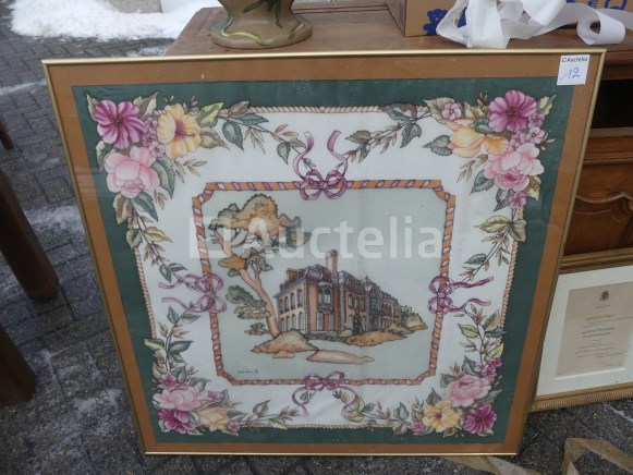 Lijst met zijdeschildering Merki: Marie Laure Alff Breedte: 100 cm Hoogte: 100 cm Getekend Marie-Laure Alff Notities: Ophalen op afspraak