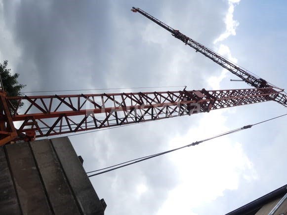 Zelfopbouwende kraan Merk: Arcomet Model: T24 Jaar: 1992 Spanning: 400V driefasig Lengte: 1360 cm Hoogte: 360 cm Gewicht: 9600 kg Vermogen: 1,5 kW Werklengte: 24 m Werkhoogte: 20 m Capaciteit: 2000 kg Status: Functioneel op Inventarisatiedag Totaal tegengewicht: 10.500 kg