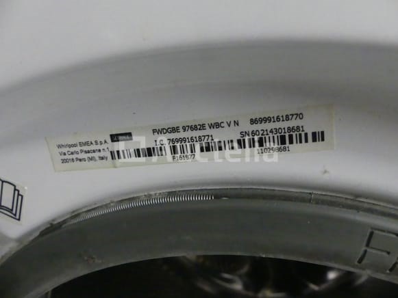 Wasmachine Merk: Whirlpool Model: FWDGBE 97682E Spanning: 230V Mono Lengte: 65 cm Breedte: 60 cm Hoogte: 85 cm Conditie: Niet getest Gecombineerde was- en droogmethode Met geïntegreerde warmtepomp