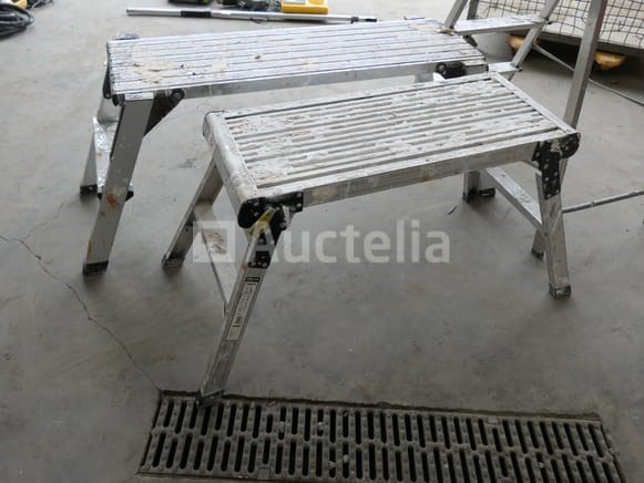 Opvouwbare ladder en kleine dienbladen op poten