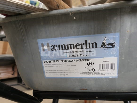 Gegalvaniseerde tankkruiwagen Merk: Haemmerlin Capaciteit: 95 liter Gereedschap; 1 pikhouweel, 1 knots, 1 hark, 2 schoppen, 1 merlijn, 1 borstel Opmerkingen: Aanbevolen bezoek