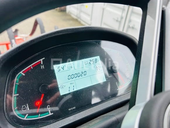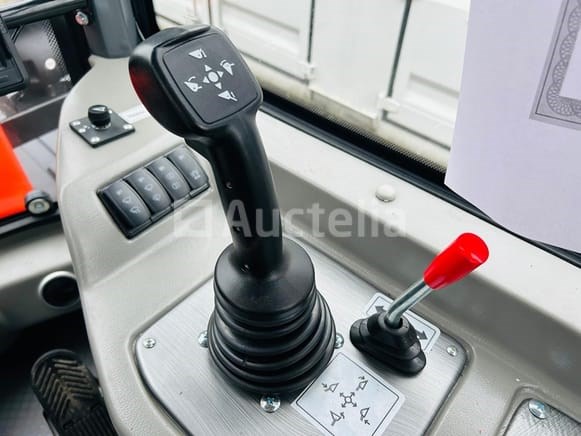 V.v. Quick Hitch; maximale hefhoogte 2980mm; rijsnelheid: 22 km/h; 4WD; Luxe volledig gesloten cabine; V.v. 1 deur; te openen raam; geveerde stoel; radio; ventilator en verwarming; Kantelbare cabine ivm vereenvoudigd onderhoud; graafbak van 0.53 m3 en palletvorken; totale afmeting met graafbak; Rated load 1200KG; Eigen gewicht 4000KG; 36,8 Kw; 5190x1770x2600m