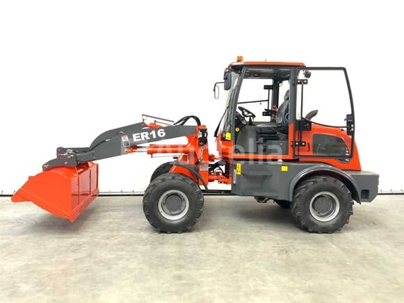 Ongebruikt; hydraulische snelwissel; rated load 1600kg; maximale hefhoogte 2980mm; Motervermogen 50PK; Transmissie 2 versnellingen Torque Converter Max. rijsnelheid: 22 km/h; 4WD; Luxe volledig gesloten cabine; V.v. 1 deur; te openen raam; geveerde stoel; radio; ventilator en verwarming; Kantelbare cabine ivm vereenvoudigd onderhoud; graafbak van 0.80 m3 en palletvorken; totale afmeting met graafbak; 6152