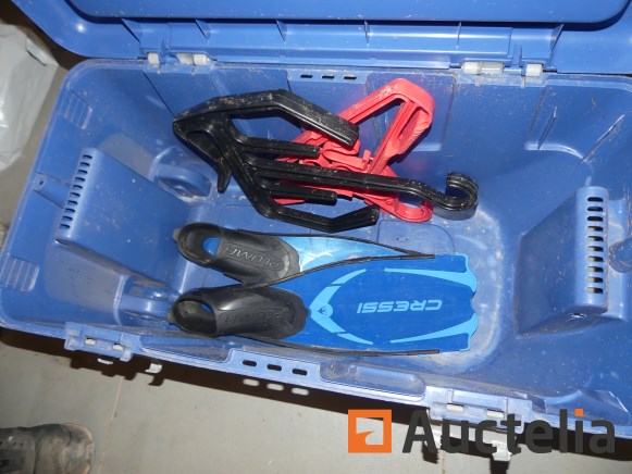 Verschillend duiken apparatuur; vinnen, masker, ...