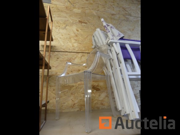 2 x zetels hout en stof 1 x PVC kind zetel door merk KARTELL door Starck Loulou Gost 1 x Rek metaal en hout Opmerkingen: Aanbevolen bezoek
