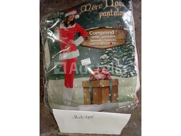 Set van +/-21 pakjes kerstmanbaarden en pruiken - nieuw Set van +/- 20 kerstdecoratiepakketten - nieuw Mevrouw Claus kostuum T42 - nieuw Set van +/- 50 pakjes diverse kerstdecoraties - nieuw Set van +/-16 kerstpetten - Nieuw