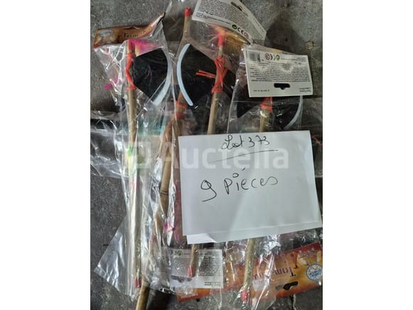 Set +/-54 Large Axes Karnavalsaccessoires - Nieuw Set van +/-5 grote nep kermisaccessoires - Nieuw Set van +/-9 Indiase carnavalsbijlen - Nieuw