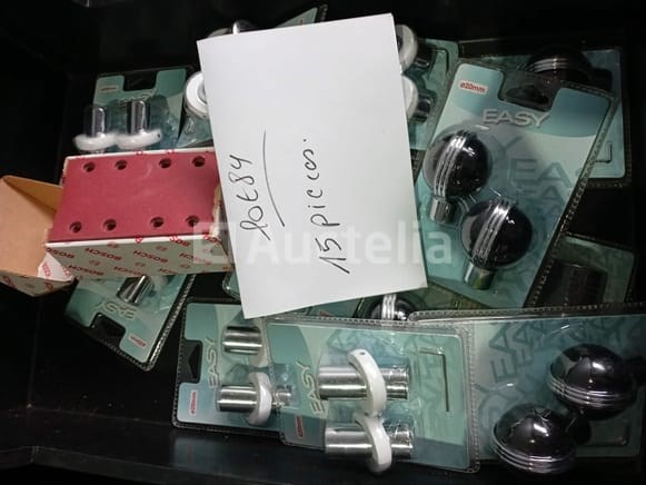 Set van +/-22 elektrische verlengstukken - nieuw Set +/-68 gezichtsmaskers - Zwarte stof - Nieuw Pakket met +/- 43 badkamerartikelen - Nieuw Set van +/- 80 Diverse Kortingsartikelen - Nieuw Set van +/-5 wijnstokhouten flesopeners - nieuw Set van +/-15 pakjes badkamerartikelen +1 doos Bosh schuurpapier schuurpapier - nieuw