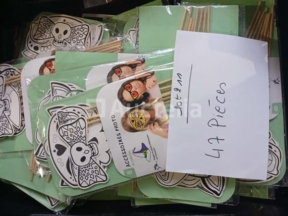 Set van +/-48 grote A4-mappen - nieuw Set van +/-12 grote pakjes crêpepapier - nieuw voor doe-het-zelf of anders - nieuw Set van +/-6 potten voor bloemstukken - nieuw Pakje van +/-47 pakjes kleurmaskers - nieuw