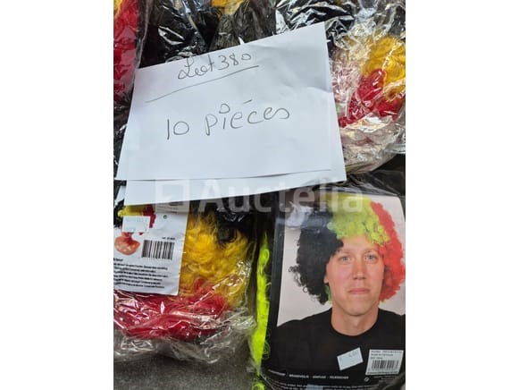 Set van +/-13 verschillende carnavalspruiken - Nieuw Set van +/-42 verschillende carnavalpruiken - Nieuw Set +/-10 Belgische Supporter pruiken - Nieuw Set van +/-22 pompons voor meisjes - nieuwe verschillende kleuren