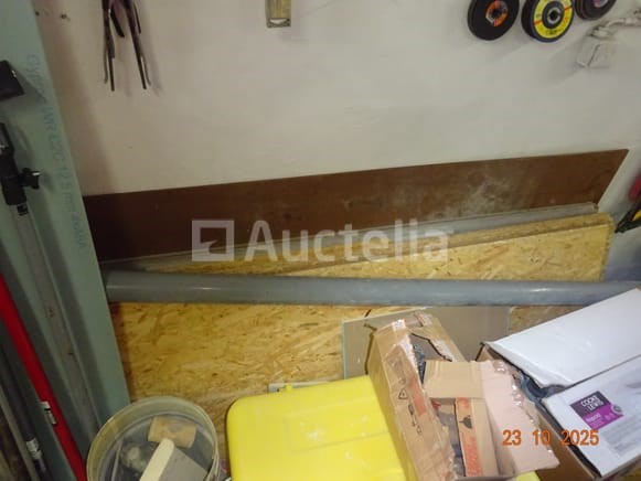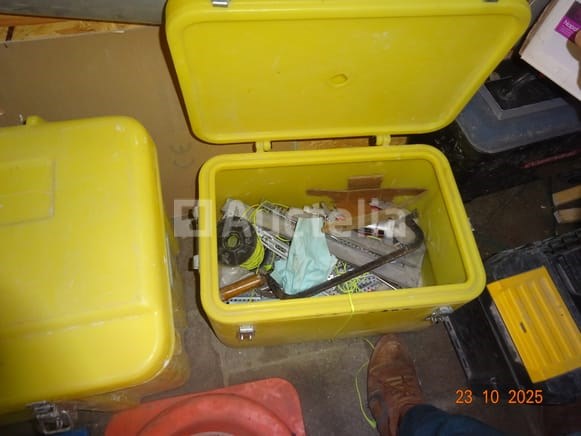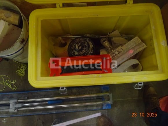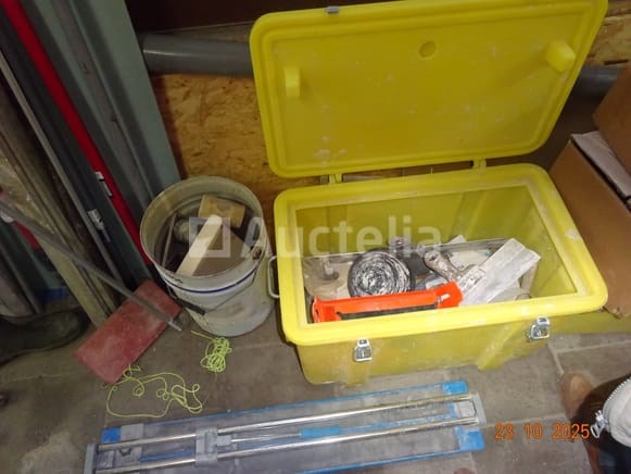 1 set OSB-vellen 2 gele PVC-dozen en hun inhoud blauwe tegelsnijder 94cm 1 veiligheidskegel Elektrische uitbreiding Sanitaire Accessoires 1 kist met het COMENSAL-merk 1 seconde STANLEY merk kluis 1 set schroeven Tang Kofferbak op wielen inclusief verschillende wiggen, zaag, tandwiel