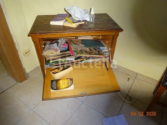 1 klapkast met een lade 2 stoelen 1 tabel 1 kast met twee deuren 1 matras 1 nachtkastje 1 leunstoel van leren De hele kamer moet worden leeggehaald
