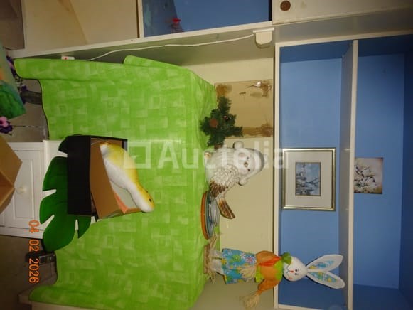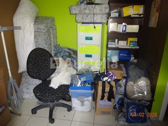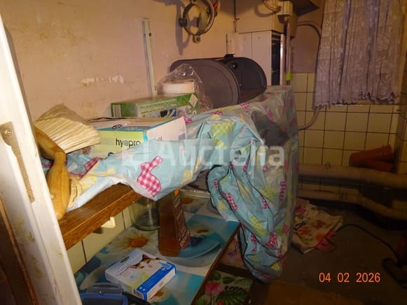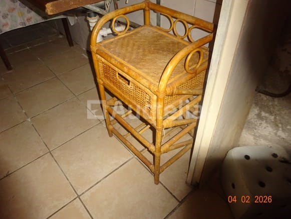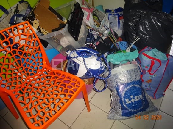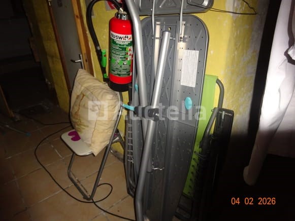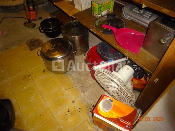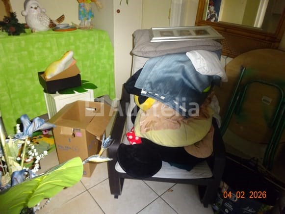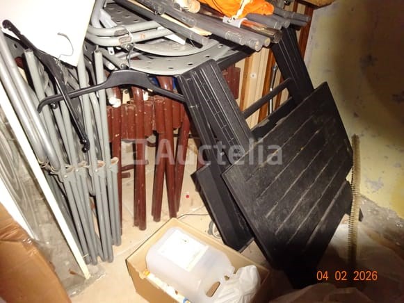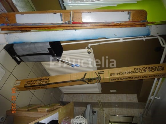 1 hoekkast, van eikenhout, twee carrosserieën 1 klok Diverse decoratieve snuisterijen 1 stoel 1 ronde tafel 1 spiegel Diverse kersttoppings De inhoud van de ruimte in de opslagruimte omvat: 1 frituur 1 set touwen 1 DOMO-merk wafelijzer 1 broodtrommel 1 set pannen 1 ventilator 1 vijfdeurs metalen kast 1 tabel 1 fauteuil 1 FRIAC vrieskist De gehele ruimte werd gebruikt als wasruimte, waaronder: 1 wasmachine Kalender Strijkplank Mokset Stoelenset Tweedeurs koelkast De hele kamer wordt gebruikt als een klein kantoor, waaronder: 1 parasolbasis in zijn doos 1 scannerprinter 1 koelkast Stoelen Stoomgenerator Metalen kast