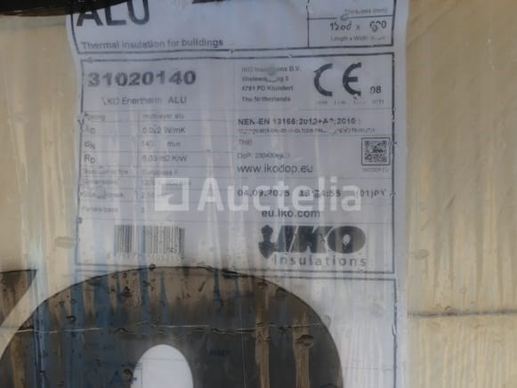 Isolatiepanelen van 14 cm dik Merk: Iko Lengte: 120 cm Breedte: 60 cm Lengte: 14 cm Hoeveelheid: +- 24 Met een aluminiumlaag Batch verspreid over een pallet