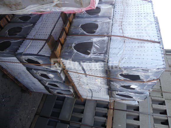 Halfvlakke tegels Merk: Monier Breedte: 23 cm Hoogte: 38 cm Aantal: +- 500 Benaderende hoeveelheid Op 2 pallets gezet