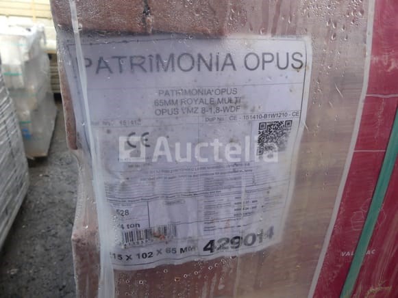 Bakstenen Merk: Wienerberger Model: Patrimonia Opus Lengte: 21,5 cm Breedte: 10 cm Hoogte: 6,5 cm Aantal: +- 4200 Benaderende hoeveelheid Uitgestrekt over 8 pallets Gewicht: +- 1350 kg per pallet