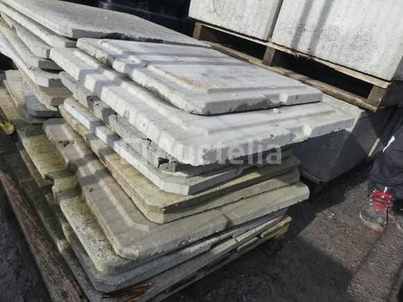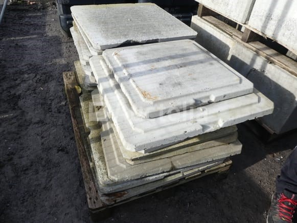 Betonnen afdekkingen voor inspectiekamers Hoeveelheid: +- 20 Compositie: +- 12 x (70x70 cm) +- 8 x (57x57 cm) Verspreid over 1 pallet