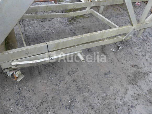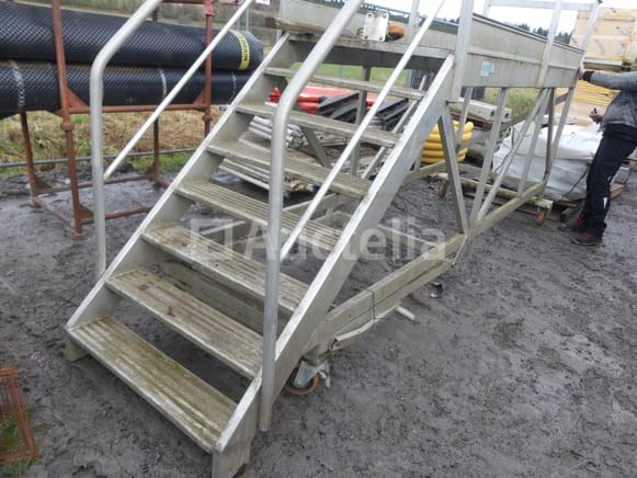 Aluminium trappad met leuningen Merk: Petry Jaar: 2018 Lengte: 430 cm Breedte: 120 cm Hoogte: 260 cm Staat: Te renoveren Landingshoogte: 150 cm