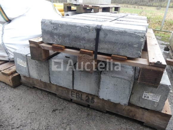 Verschillende stoepranden Merk: Ector Aantal: +- 18 Compositie: +- 12 x 60x20x20 cm randen +- 6 x 60x20x14 cm randen Op 2 pallets gezet