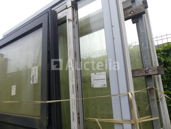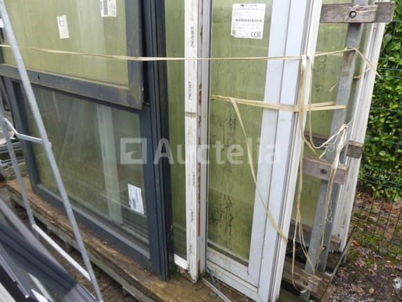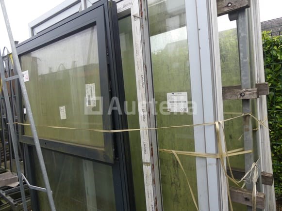 Kozijnen en deuren Hoeveelheid: +- 4 Niet inbegrepen: Dragende ezel Compositie: 1 x 2-schuifraam (aluminium): 190x150 cm 1 x 1 schuifraam + 2 vaste delen (PVC): 197x160 cm 1 x 2-sjers terrasdeur (PVC): 208x220 cm 1 x Franse raam met 2 draaideuren (PVC): 239x208 cm