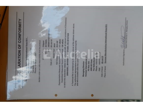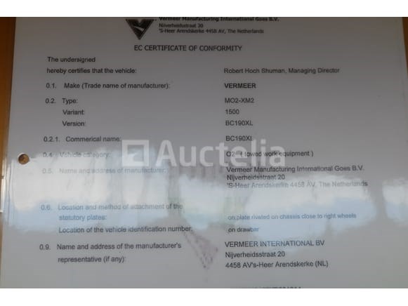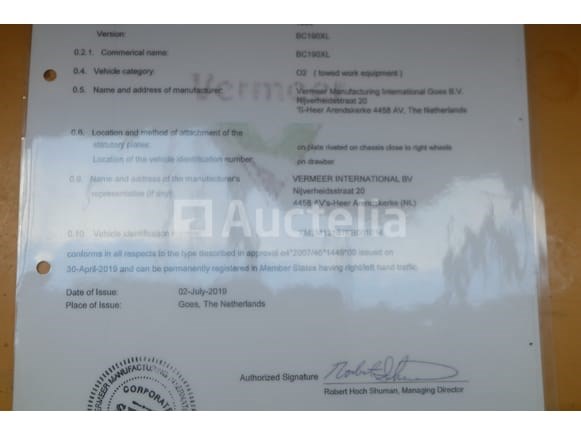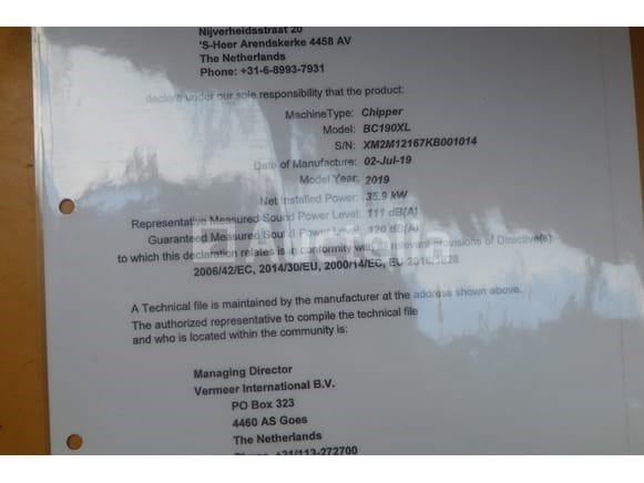 VERMEERHOUTVERSNIPPER BC190XL Merk: VERMEER Model: BC190XL 1e inschrijving: 23/12/2020 Chassisnummer: XM2M12167KB001014(01) Brandstof: Diesel Registratiebewijs (2 delen) Conformiteitsverklaringen: Begonnen tijdens de inventarisatie Motor KUBOTA 48,8 PK L x B x H 350 x 155 x 240 ongeveer. Voeden 30,5 cm Voedings 20,3 cm Sleutels: 2 Geregistreerde uren: 901 uur