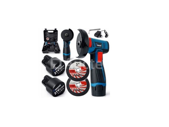 Draadloze haakse slijper 76mm Merk: ONDRAGON Kenmerken: . Voeding: 21V LI-ION batterij . RPM: 19500 RPM . Diameter van de slijpschijf: 76 mm . 2 x 21V batterijen . Charger . Schijfmontagesleutel Conditie: Nieuw Scheepvaart: Tarief A