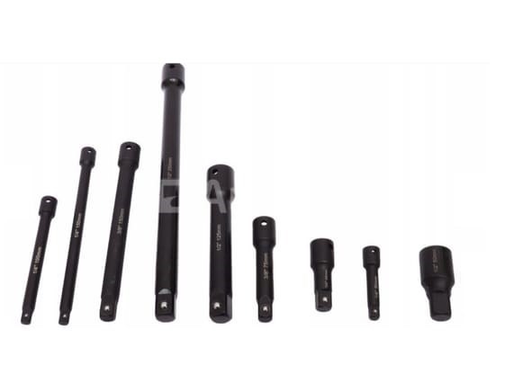 Set van 9 Impactsleutelverlengingen Merk: FALON TECH Conditie: Nieuw Details: . Verlengstekkergrootte: 1/2", 3/8", 1/4" . Verlengingslengte: 50 - 250 mm Conditie: Nieuw Scheepvaart: Tarief A