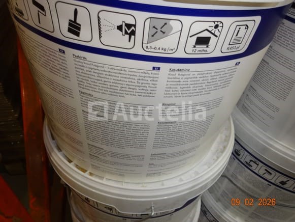 6 emmers van 20l met een pleisterbasis voor de gevel, te bespuiten