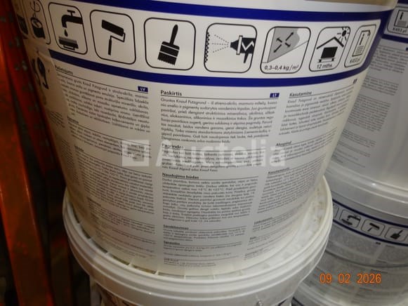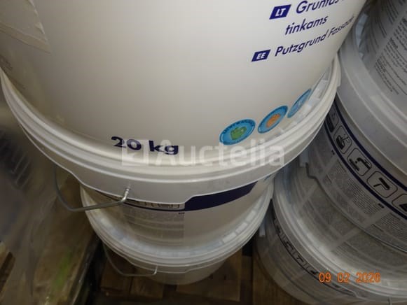 6 emmers van 20l met een pleisterbasis voor de gevel, te bespuiten