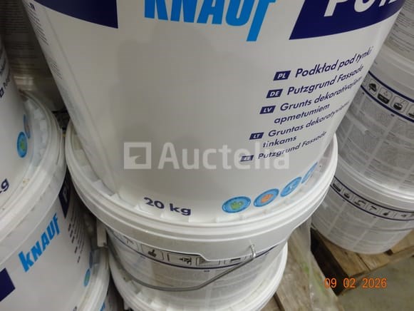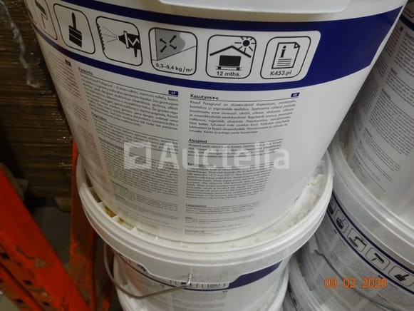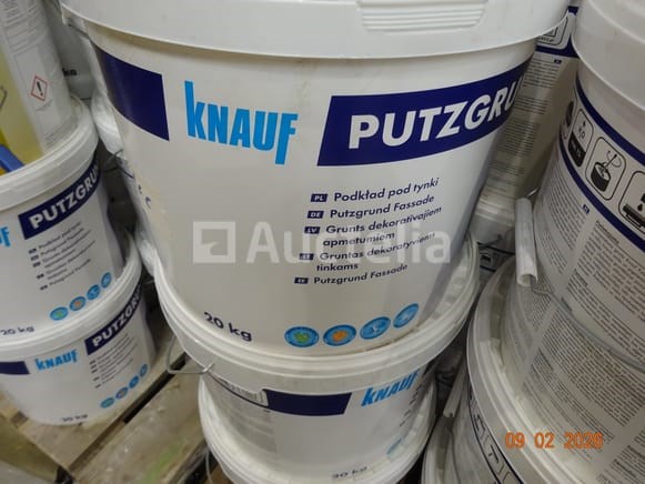 6 emmers van 20l met een pleisterbasis voor de gevel, te bespuiten