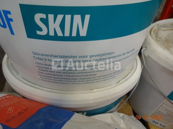 5 emmers siliconen-gelaagde pleisterwerk voor de gevel aan de onderkant Merk: KNAUF Capaciteit: 20 kg