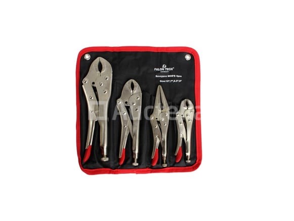 Set van 4 krimptangen Merk: FALON-TECH Verschillende maten Kenmerken: . Professioneel vervaardigde zelfvergrendelende rechte tangen die worden gebruikt voor vasthouden, afschroeven, schroeven of soortgelijk werk. . Luskap-kaken zorgen voor een stevige grip. . Ze zijn gemaakt van zeer goede kwaliteit staal. Conditie: Nieuw Scheepvaart: Tarief A