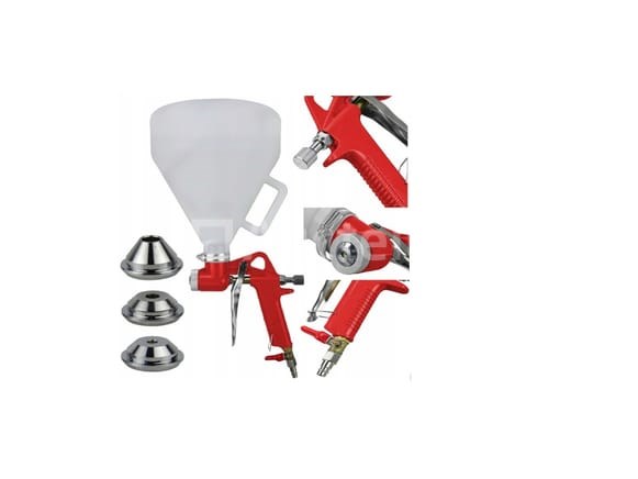 Professioneel luchtdrukpistool (schilderen, pleisteren, zandstralen) Merk: KRAFF&DELE Kenmerken: . 5L Verftank . 3x verwisselbare mondstukken: 4, 6, 8 mm . Kabelbinder . Mondstukdiameter: 4/6/8 mm . Voedingsmethode: zwaartekracht . Krachttype: Pneumatisch . Bedrijfsdruk: 3 - 5 BAR . Luchtverbruik: 100 - 250 l/min . Luchtstroomaanpassing: Ja . Tank: 5 L . Connector: 1/4" Conditie: Nieuw Scheepvaart: Tarief A